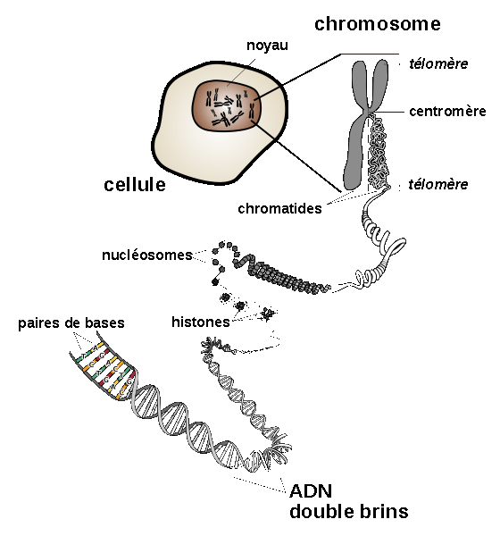 Le but de cette page n'étant pas de faire un cours de génétique, mais simplement de présenter des éléments fondamentaux, elle se limite globalement à la présentation des cellules somatiques (qui ne sont pas à l'origine des gamètes), eucaryotes (avec un noyau) et diploïdes (avec des chromosomes présents par paire). Les exemples seront pris sur l'homme et le maïs