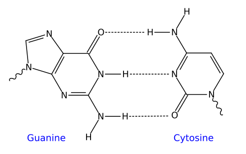 La liaison G-C est la plus stable: elle comprend trois ponts hydrogènes.
