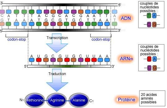La transcription et la traduction de l'ADN