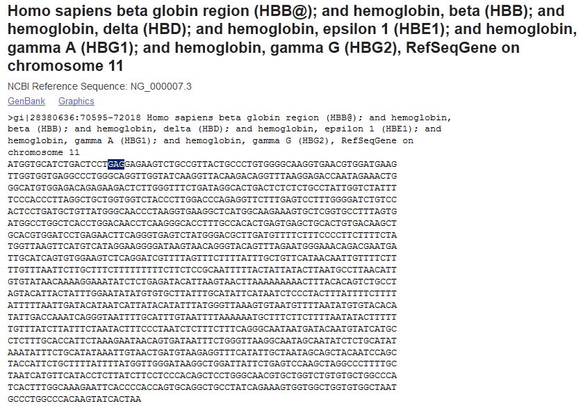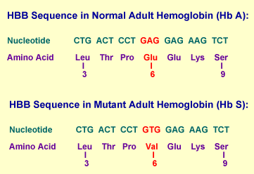 Exemple de variation SNP dans le gène HBB